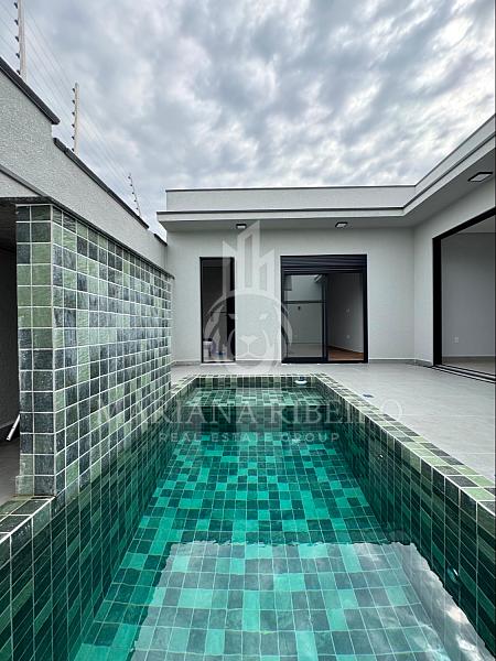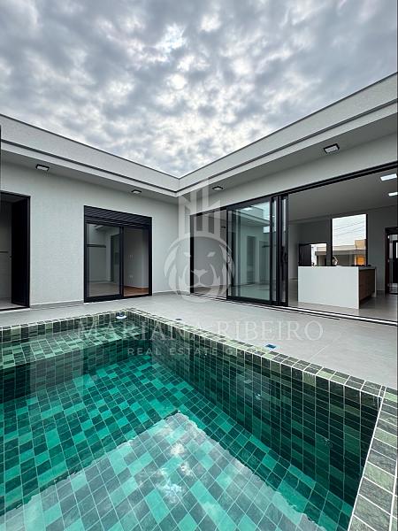 Ambientes com preparação para ar-condicionado, louças e metais de alto padrão, móveis planejados nos principais espaços, piscina com cascata e uma garagem para até 4 carros (2 cobertos).